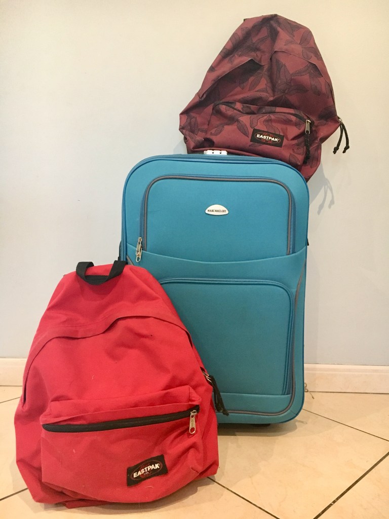 Nous divisons généralement la valise en deux parties équitables (certaines valises ont déjà des compartiments séparés par une fermeture éclair, ce qui facilite un peu plus les choses) : chacun a une moitié, ce qui oblige à restreindre ce que vous emmenez au stricte nécessaire : prendre un seul pyjama chacun, rouler les vêtements, mettre les chaussettes et paquets de mouchoirs en dernier pour combler les espaces vides… toutes ces petites astuces peuvent vous permettre de gagner de la place.
