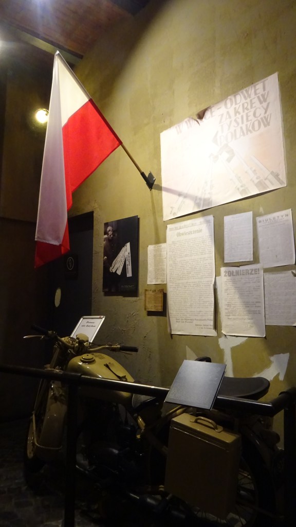 Apenas al entrar, los efectos de sonido imitando ruidos de bombardeos y aviones sobrevolando la ciudad nos transportan a la Varsovia de 1944, una ciudad sitiada por las fuerzas alemanas, que ya no lucha por la victoria, lucha por sobrevivir. El museo presenta fotos, cartas, uniformes, vehículos, panfletos propagandísticos, banderas, una imprenta funcional con tinta de la época, un bombardero aliado de tamaño real, utilizado por aviadores polacos, y muchos otros tesoros que retratan el alzamiento en todos sus aspectos. Mucha precaución, sin embargo, pues algunas imágenes pueden ser perturbadoras: pongan atención a las diversas indicaciones señalándolas. Procuren mirar bien a su alrededor: el museo ofrece fichas escritas en polaco o en inglés, frente a cada exhibición, a modo de explicaciones. Pueden recolectarlas y llevarlas con ustedes para guardar un pequeño recuerdo de esta experiencia.